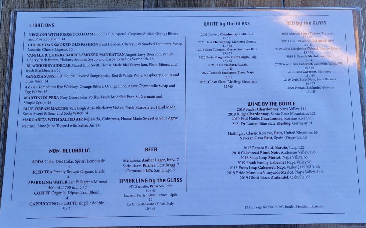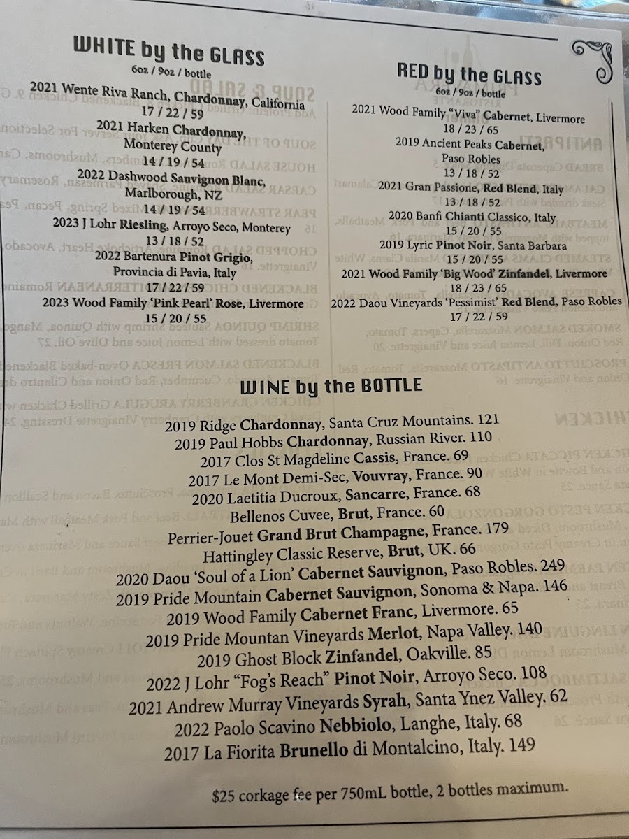 Primavera Ristorante Menu